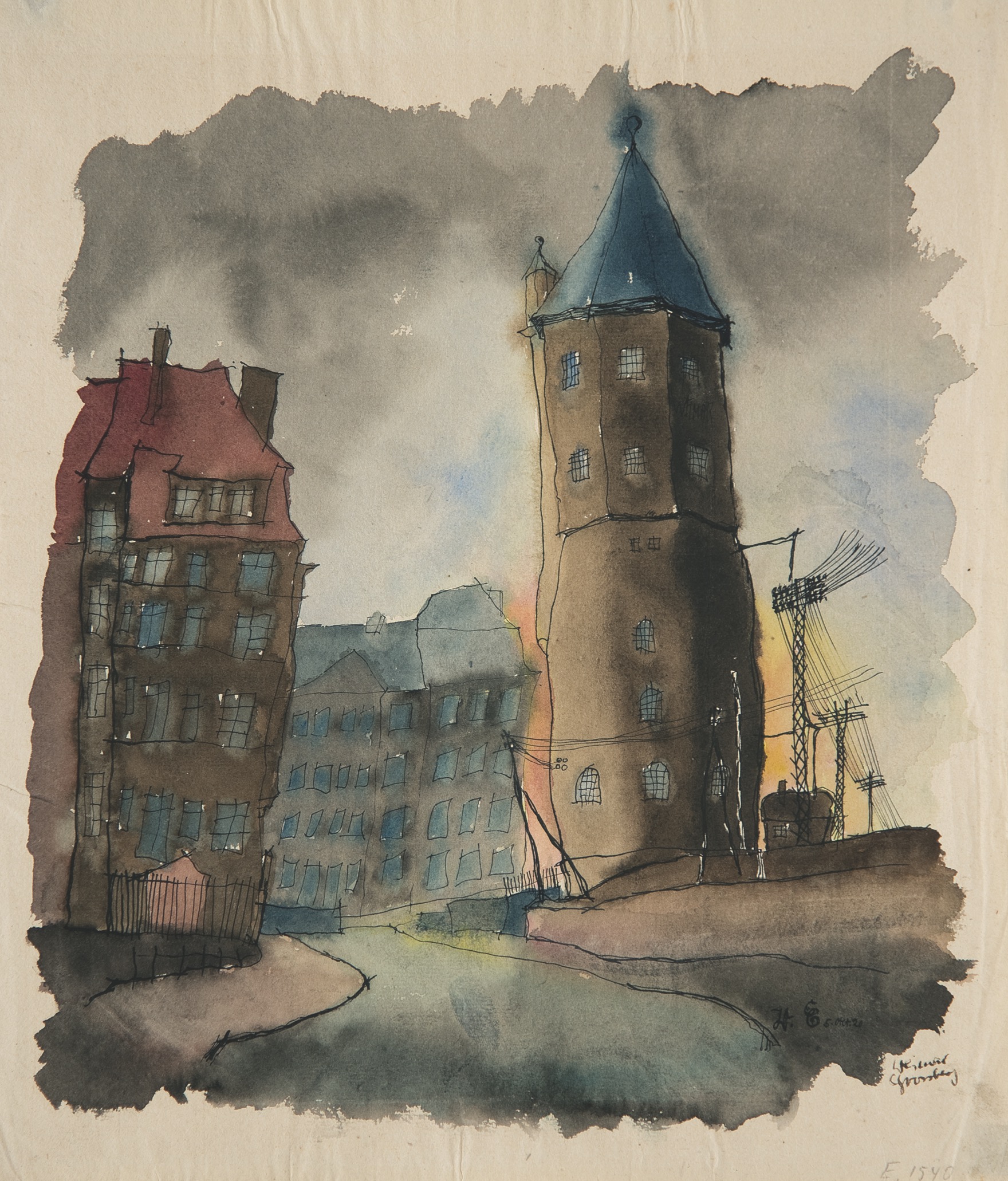 Weimar, Straßenansicht mit Turm (Weimar, Street View with Tower), 1920