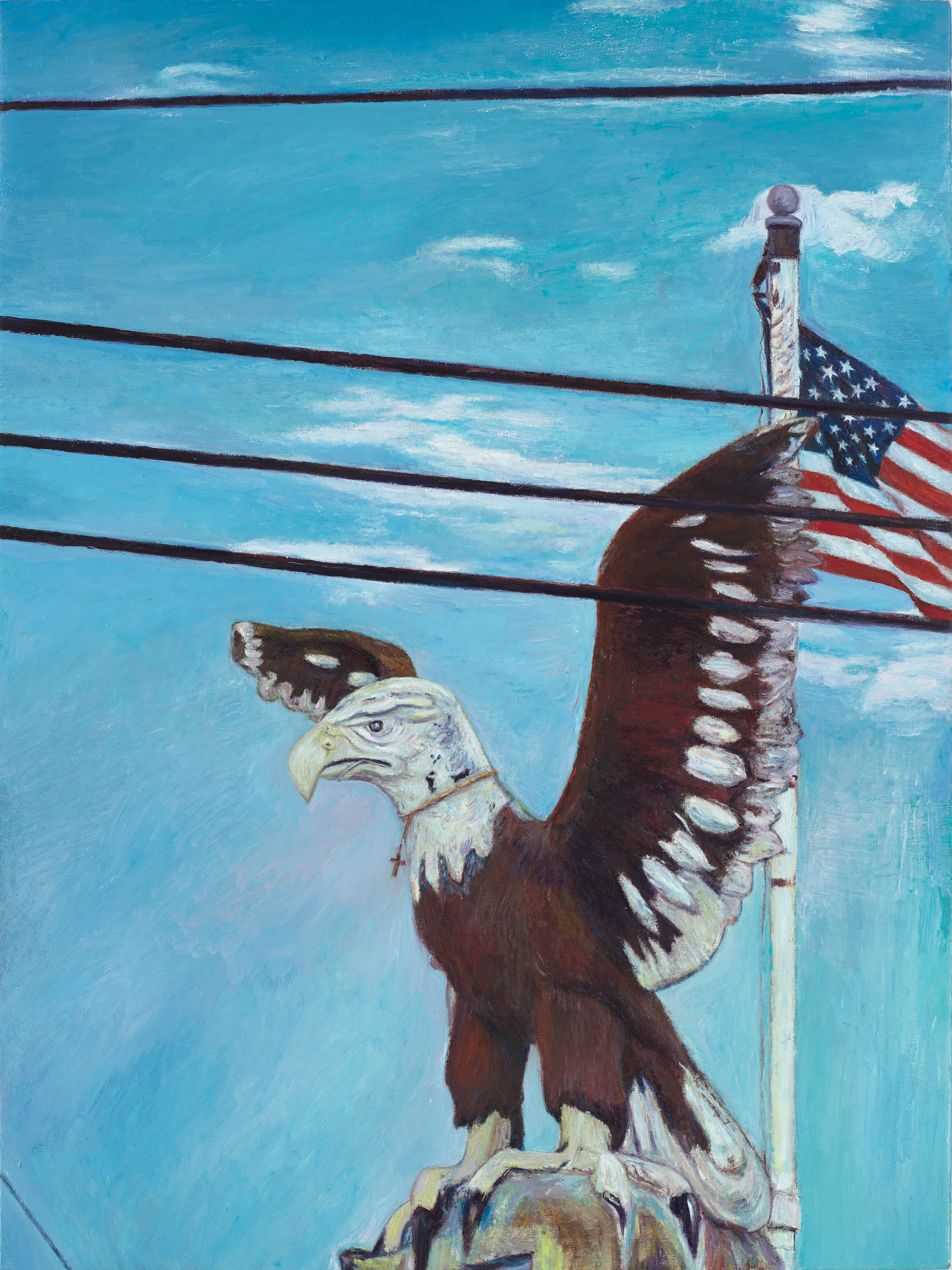 This is of a plaster statuette perched on the roof of an abandoned Eagles Lodge, next to Mings, Andrew’s favorite American "chop-suey" Chinese restaurant in Huntington Beach, CA. If he and his talons seem fierce, it’s perhaps because I painted him before and through Sandy and its aftermath, holding strong to the solace of the painting, as I created it by candlelight the night the hurricane hit, by windowlight in the day and days that followed. I hope this is like America today: although we have had our struggles recently, hopefully we are holding on, bracing ourselves for the future and remaining strong.