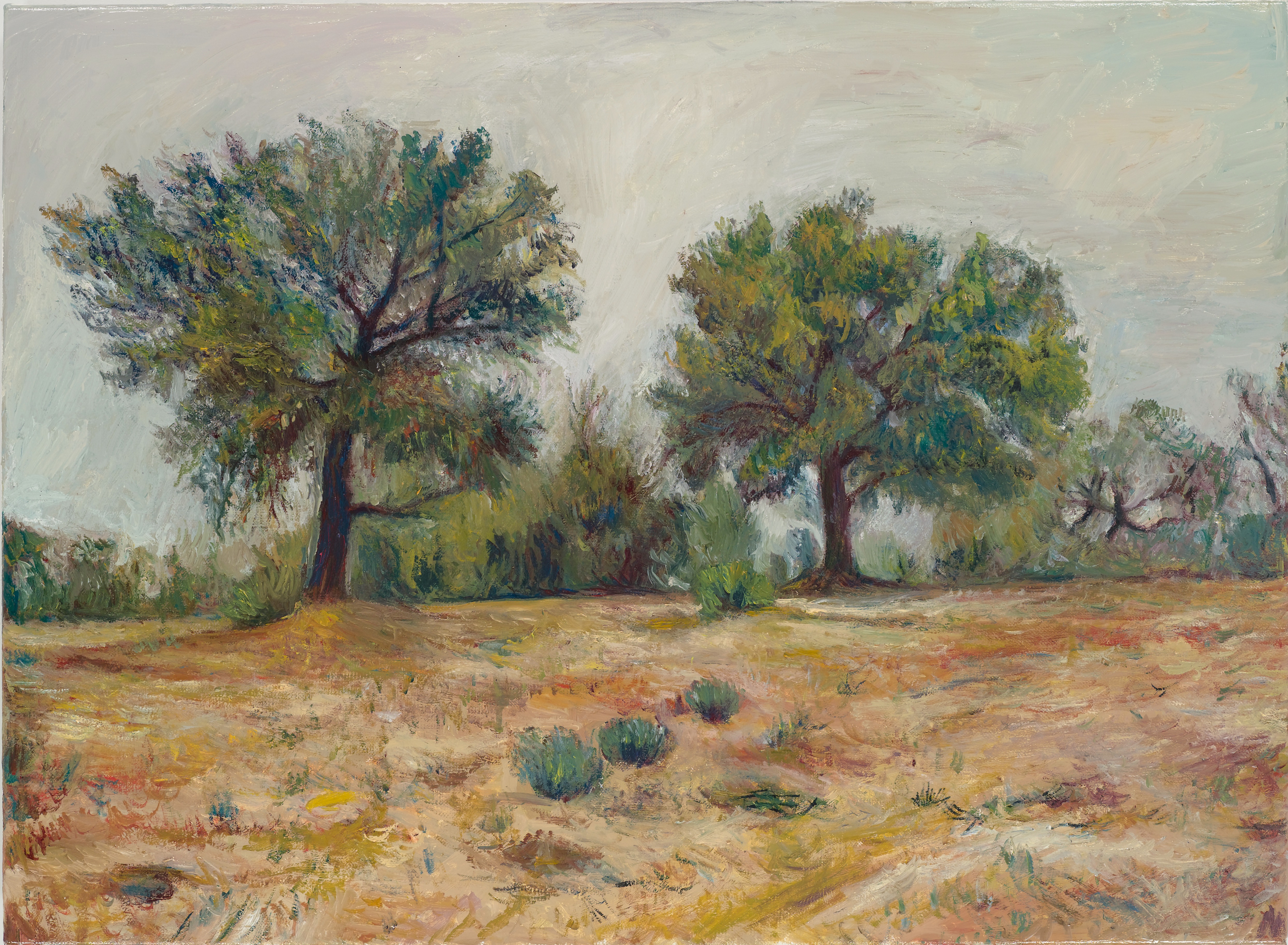 When I took this photo and saw the results, I yearned to paint it. I’m not a new-age "magical thinking" type person, however, now when I make art, I want to create images that give me optimism and hope, and that are a pleasant meditation to locate my thoughts. I do think if you are creating images of things you wish to happen in your own life, beyond magical thinking, it just simply sets the parameters of how you might think in order for good things to happen—as we are thinking our thoughts about the problems, issues, and ideas of our day in the analytical meditation a painting can posit, as you solve the formal problems of the image, and pieces fall into place, like dreaming, perhaps the problems of your day are also solved by metonymic association. When making this picture, although we still don’t have the property in Tenaja, it brought about the warmth and emotion of the initial dream I had thinking of my future husband, and also our current love for one another, and the dreams and hope that we share in our life. The personal is political, and hopefully this also resonates as a gay romantic love and relationship that two middle-aged men could share in the freedom of the Twenty First Century, that in a painterly manner, also harkens back to the Romantic era of art of silhouetted figures looking into landscapes of Casper David Friedrich, the Western Expansion (in a good way) of the Hudson River School, and more—doing a homosocial reading of these subjects, but more importantly, showing an everlasting yearning of Landscape Painting and its connection to romantic dreaming and the desire for achieving human potentials.
