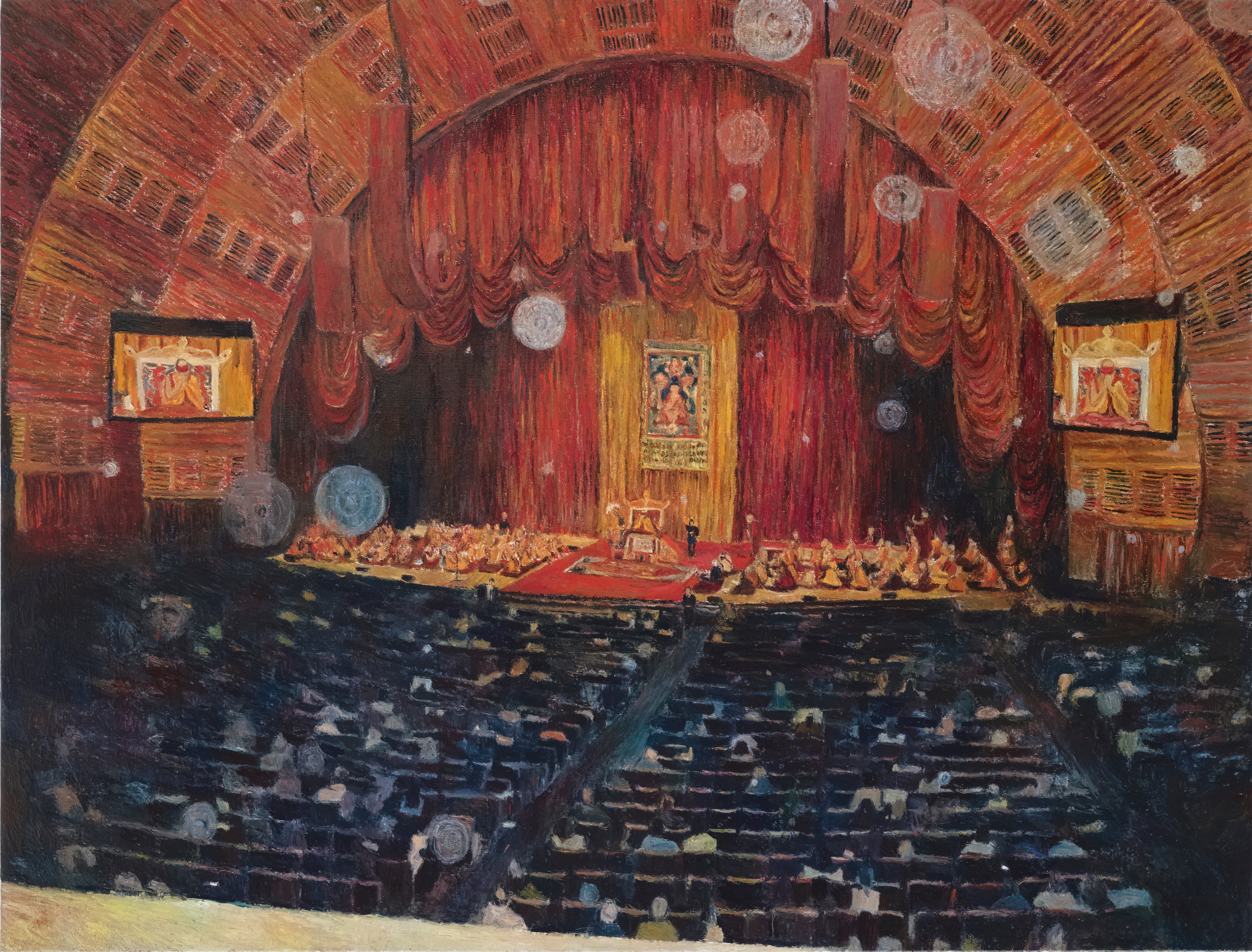 Much like the Chinese monks who would enter into a state of “maw” when they made a screen or scroll—wanting themselves as artists, in addition to the viewer, to “enter nature,” they would meditate while rendering and “become” the simplified figure in a complex background, using it as an avatar into that world, I sometimes use real-life icons to not only create allegories based on what people might know about that figure and how it operates within the context I created for it, but also, by my handling of the paint and formal nuance, for them to “feel” what the character might be feeling.