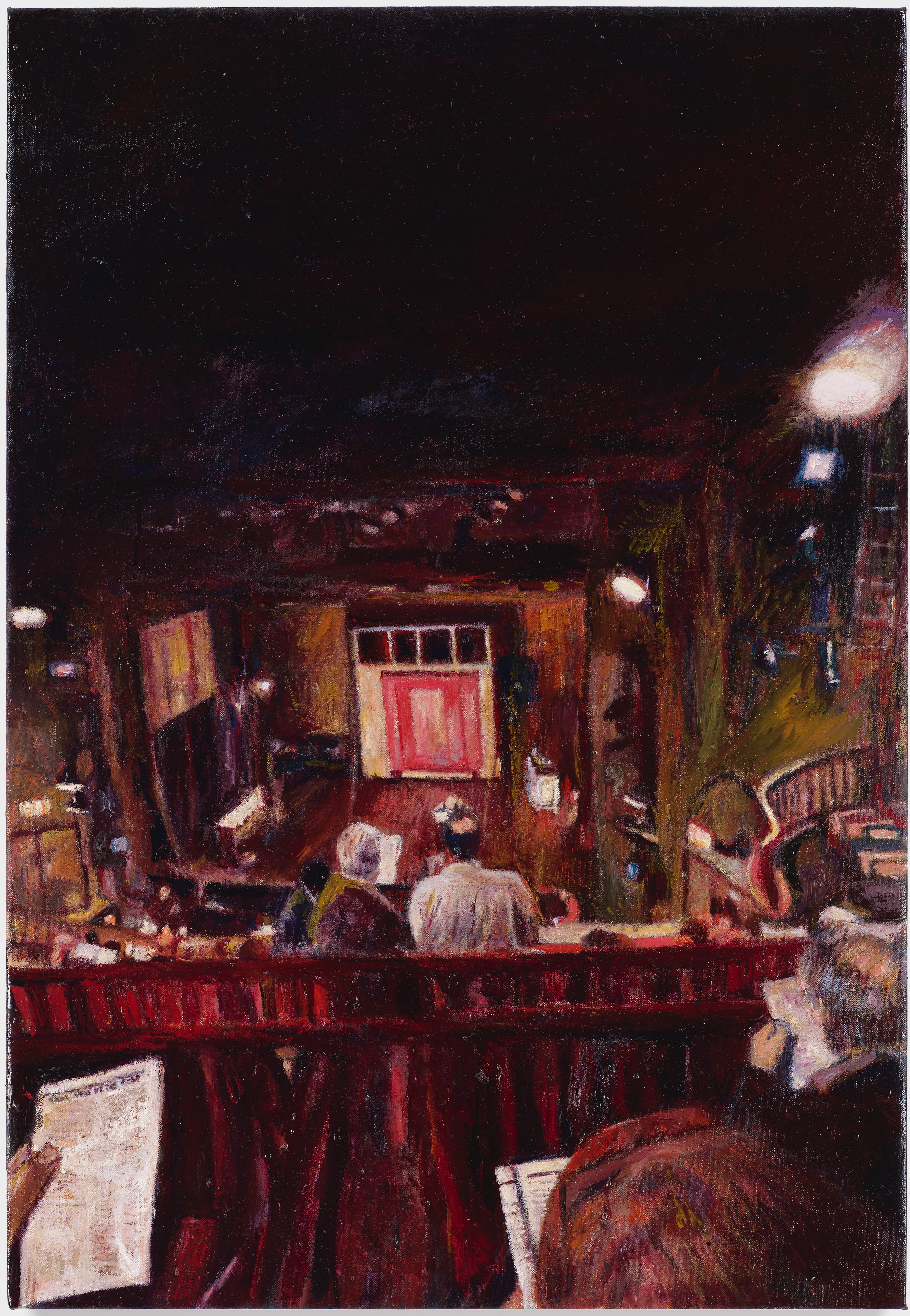 It took me almost the entire duration of the Biennial to paint the image—through the openings, excitement, and many visits to the Whitney (and teaching in-between) I would return to this small canvas, finally completing the work several months into the project.