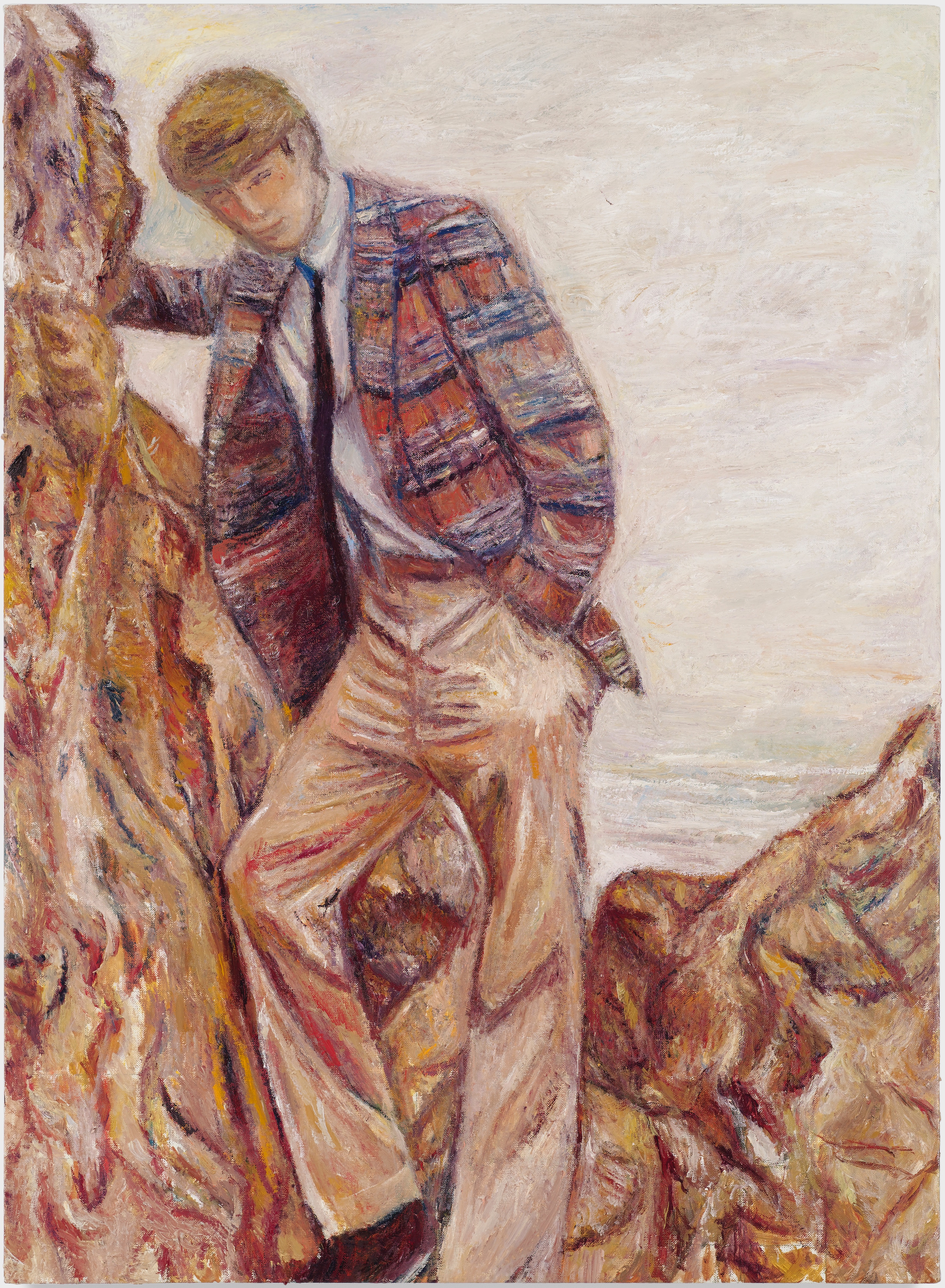 I have painted and drawn many images of James Dean throughout my life and career, and this painting came from the Heroes series, the foundation of the body of work that grew to be My American Dream—this is a seminal work. Dean was infamously gay or at least “Hollywood Bisexual,” and although his character was steaming for Elizabeth Taylor in this, perhaps the best of the three movies made in Dean’s lifetime, he also has a homosocial rivalry with (infamously gay) Rock Hudson, in addition to being a rogue who defies the symbolic order of patriarchy and class. I also love the movie Querelle, by Rainer Werner Fassbinder based on Genet’s book, where the Hollywood musical becomes transformed into a homoerotic set with sailors in the Gene Kelly roles.